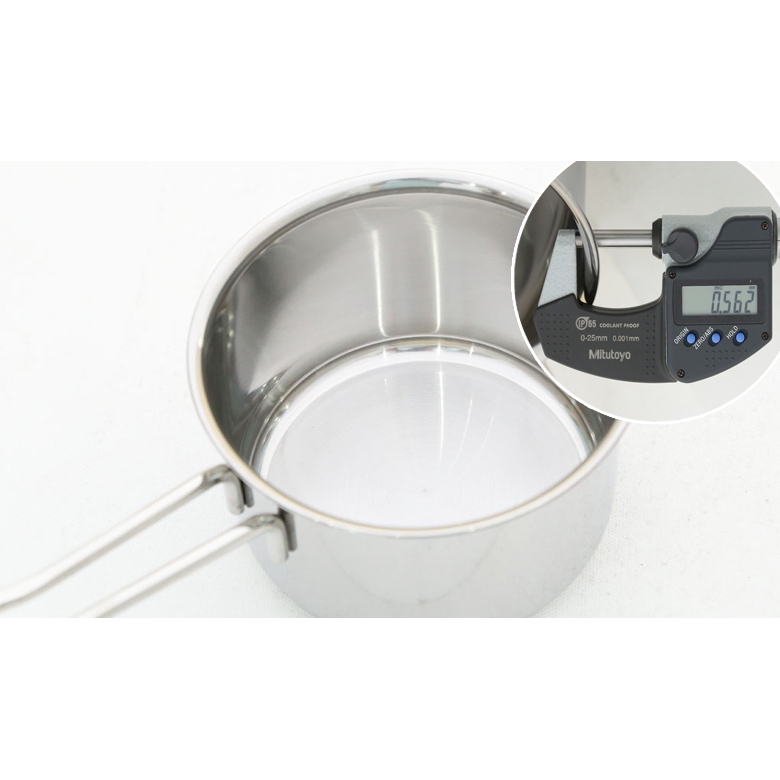 -Nồi inox 14 cm nắp Kính được làm bằng inox 430, ít bị oxy hoá, độ dày gần 0.6 mm, giúp làm nóng nhanh, thích hợp nấu cháo, nấu canh lượng ít.