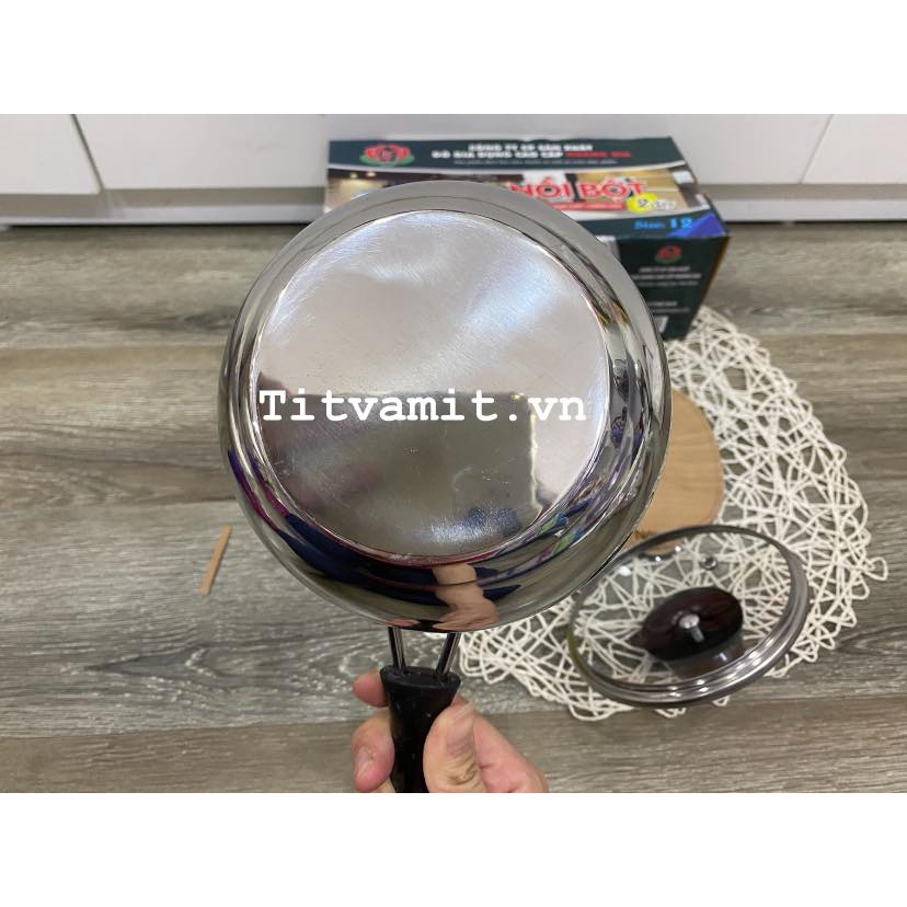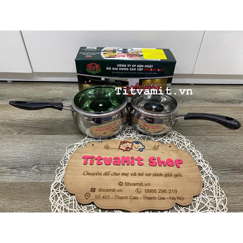 Nồi quấy bột cho bé INOX 2 đáy size 12, size 14Giới thiệu sản phẩm Nồi bột INOX 2 đáy vung kính HOÀNG GIA