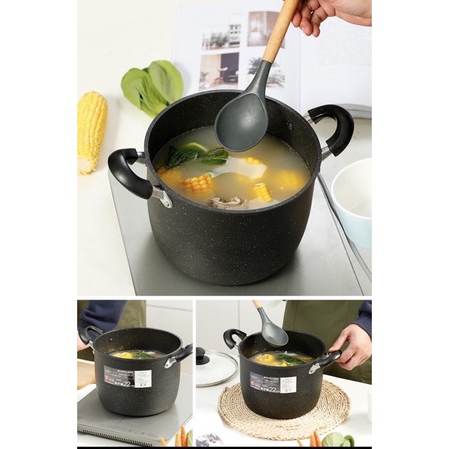 Nồi Sara 22cm cao thành,nồi chiên rán ,nấu vân đá chống dính SARA NHẬT BẢN (dùng cho bếp từ)7086