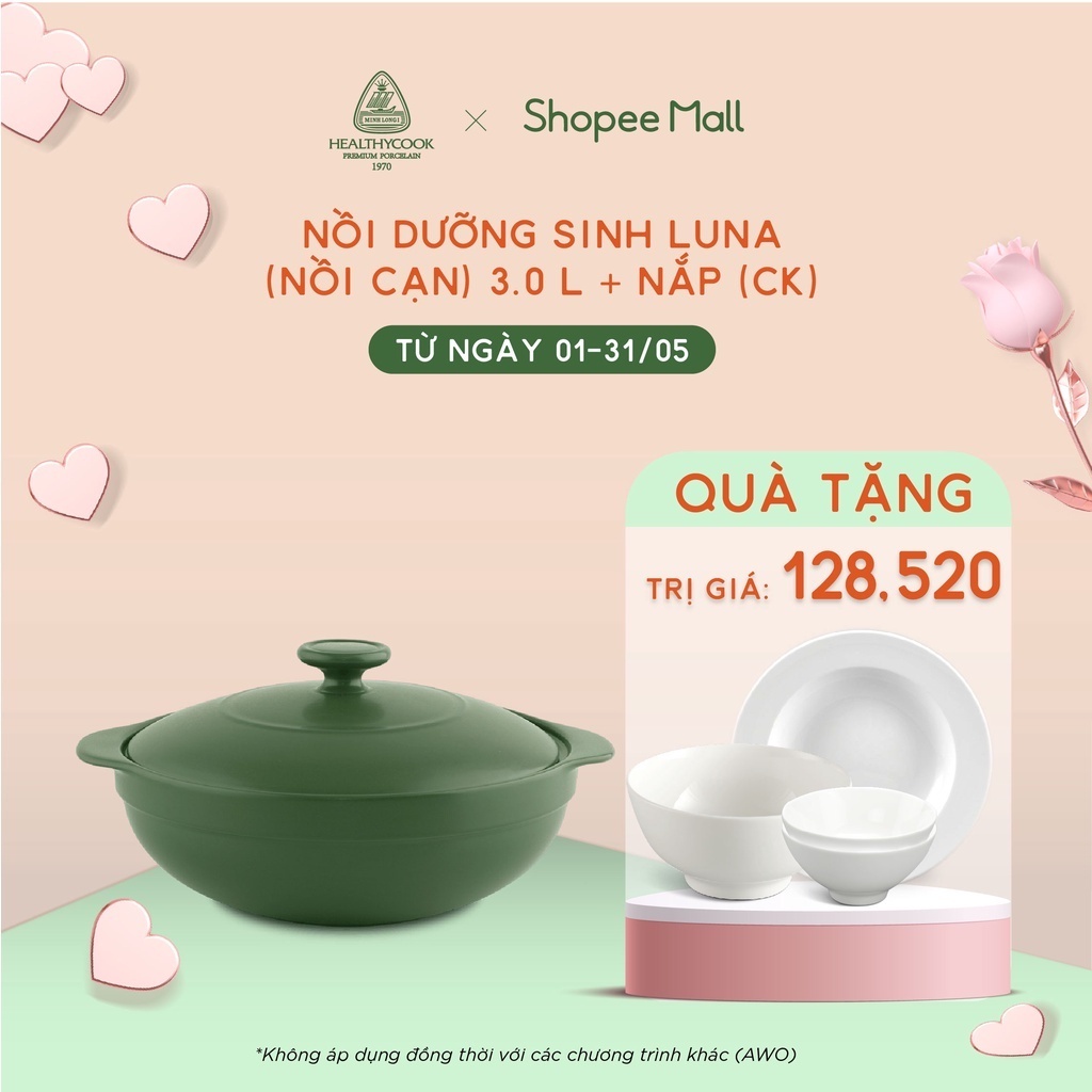Nhà cửa & Đời sống > Dụng cụ nhà bếp > Nồi || Nồi sứ dưỡng sinh Minh Long - Luna 3.0 L + nắp dùng cho bếp gas, bếp hồng ngoại, không dùng cho bếp từCòn hàng