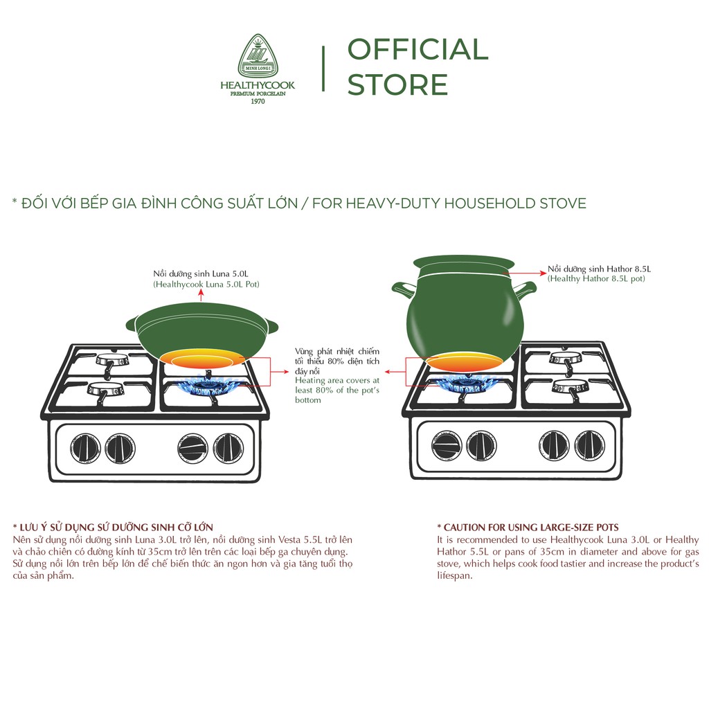 Nồi sứ dưỡng sinh Minh Long - Luna 5.0 L + nắp dùng cho bếp gas, bếp hồng ngoại, không dùng cho bếp từ