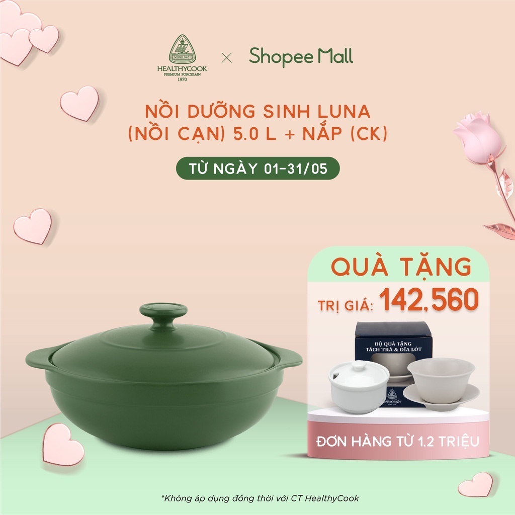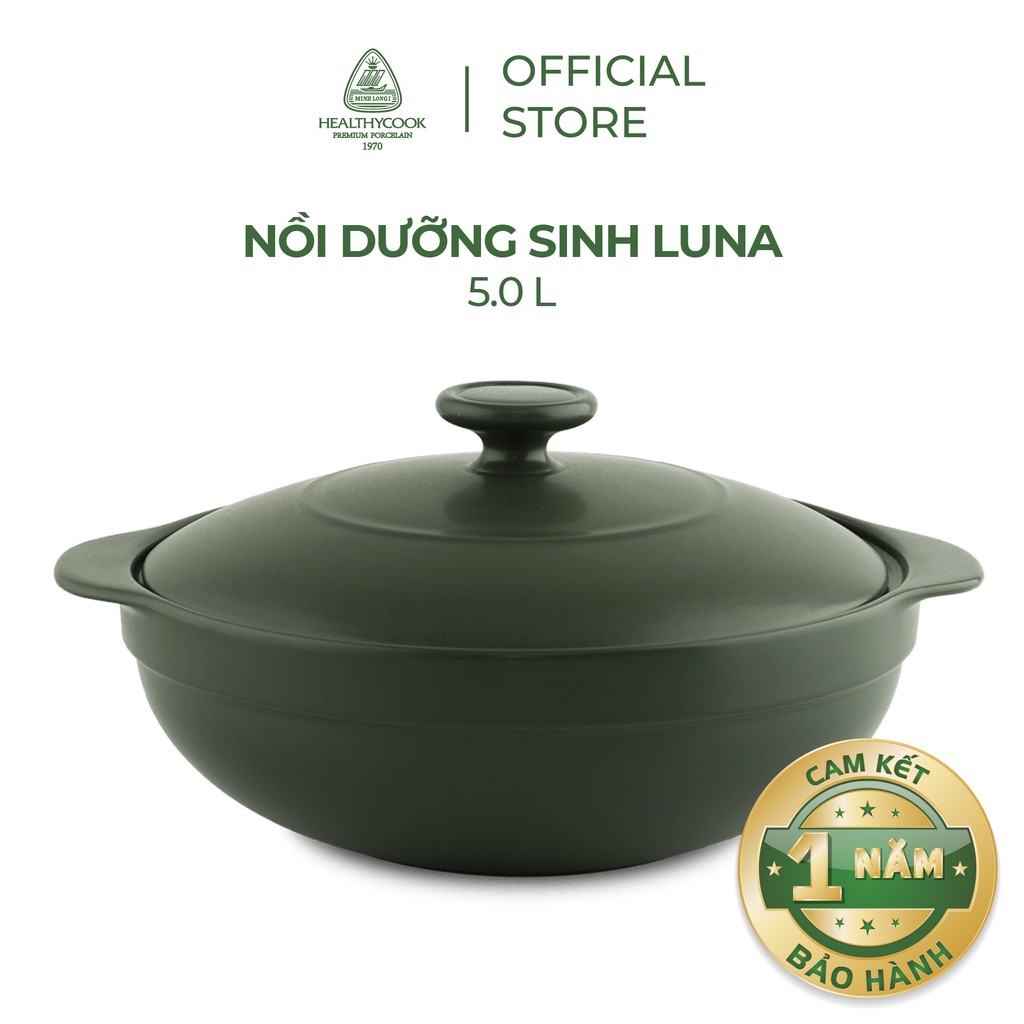Nhà cửa & Đời sống > Dụng cụ nhà bếp > Nồi || Nồi sứ dưỡng sinh Minh Long - Luna 5.0 L + nắp dùng cho bếp gas, bếp hồng ngoại, không dùng cho bếp từCòn hàng
