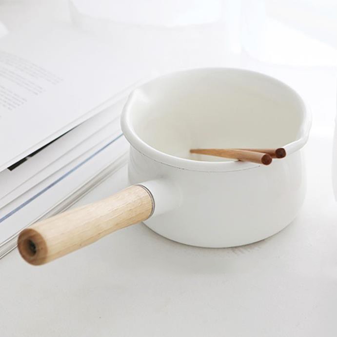 - Nồi sứ trắng chất liệu ceramic kết hợp với cán gỗ chống nóng, thiết kế sang trọng