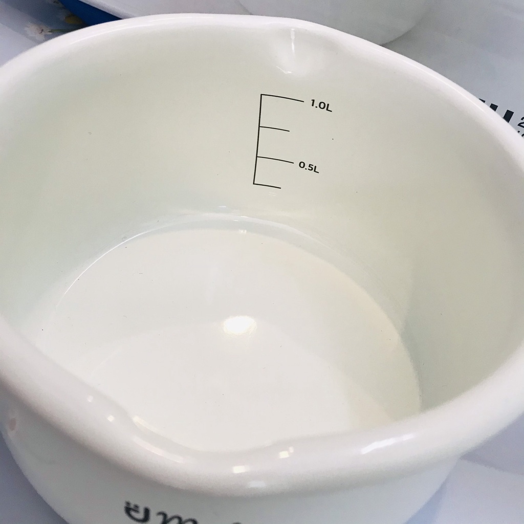 ✔ Nồi chất liệu gang tráng men, có vạch chia ml rất thuận tiện cho mẹ ước lượng nấu cháo