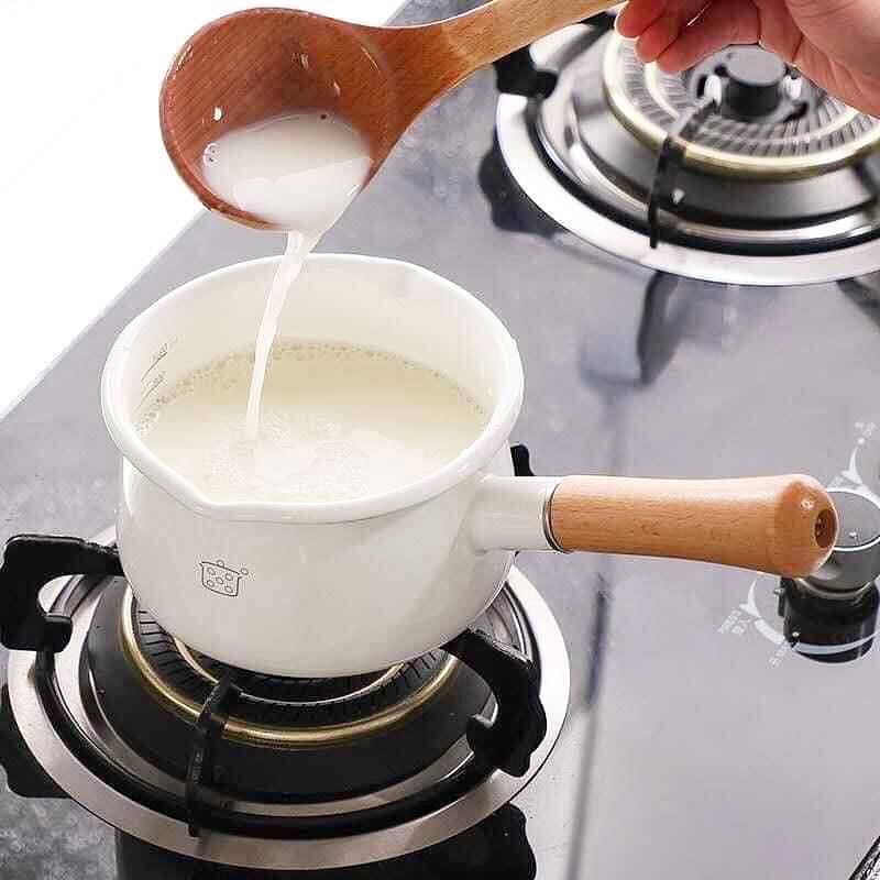 🌸 Nồi sứ trắng kết hợp với cán gỗ đơn giản, thiết kế sang trọng