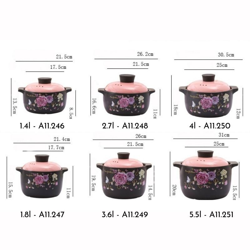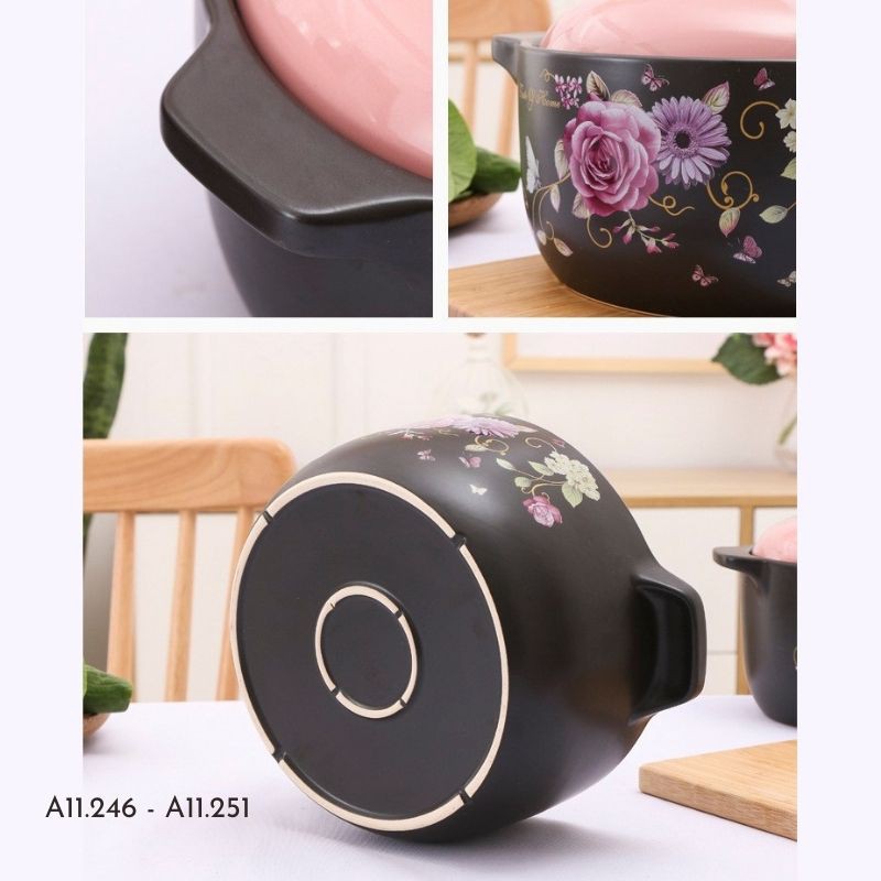 ⭐ THÔNG TIN SẢN PHẨM🌻 Sản phẩm: Nồi sứ, nồi hầm cháo, ninh xương, kho cá hoạ tiết hoa hồng phong cách Nhật Bản nhiều dung tích