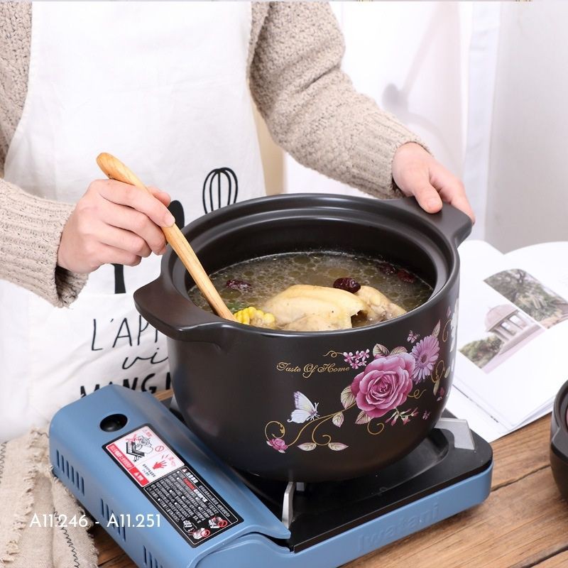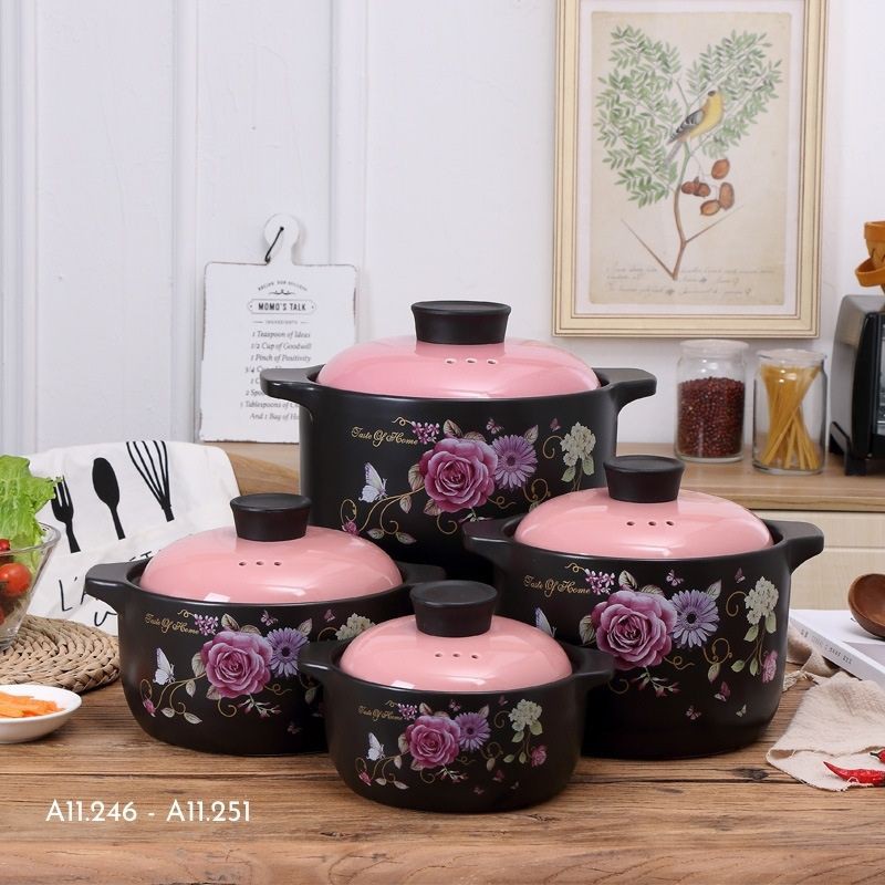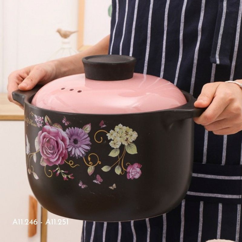 Nhà cửa & Đời sống > Dụng cụ nhà bếp > Nồi || Nồi sứ, nồi hầm cháo, ninh xương, kho cá hoạ tiết hoa hồng phong cách Nhật Bản nhiều dung tíchCòn hàng