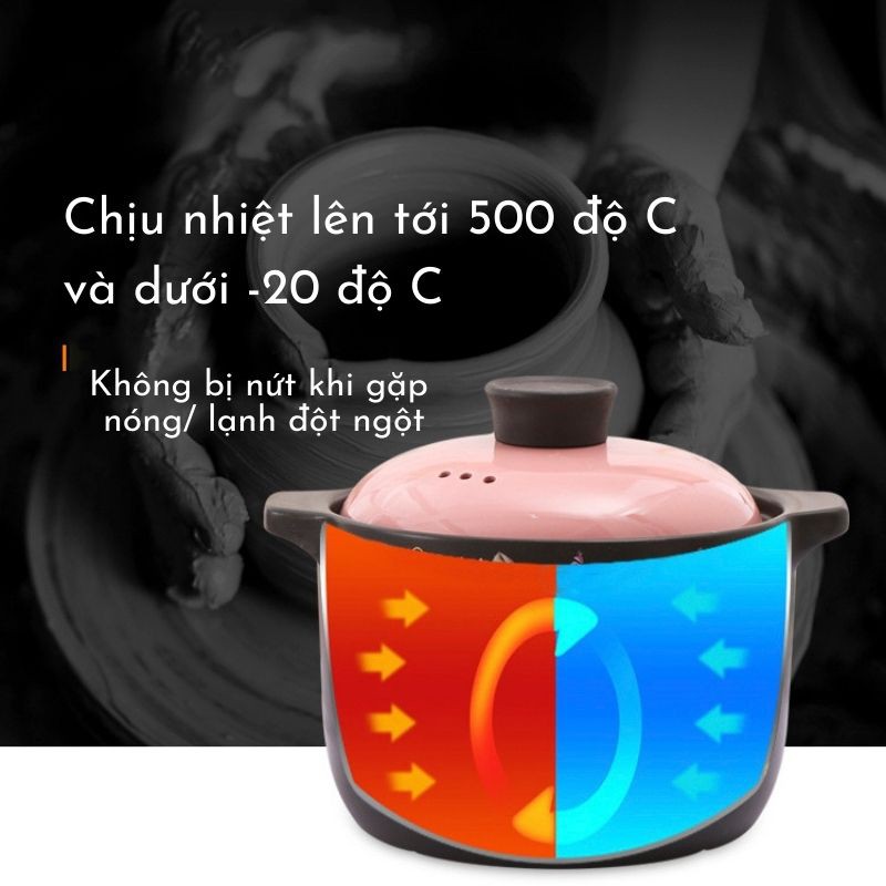 - Nắp nồi có lỗ thoát khí, giúp cân bằng áp suất trong nồi. Đáy nồi có các khe nhỏ giúp không khí dễ dàng lưu thông, nhiệt được tản đều. Gốm chịu nhiệt giúp làm chín món ăn nhanh, kỹ, đều hơn và giữ nguyên được hương vị, tinh chất. Nồi thích hợp nấu các món canh hầm, món kho…
