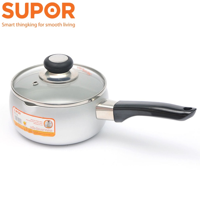 Nồi sữa hợp kim nhôm oxy hóa mềm SUPOR PS14 vung kính hàng chính hãng dành cho bé ăn dặm