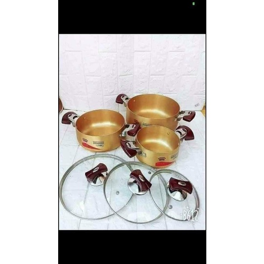 Bộ nồi Sunhoues 3 chiếc mạ vàng 6634 siêu đẹp.