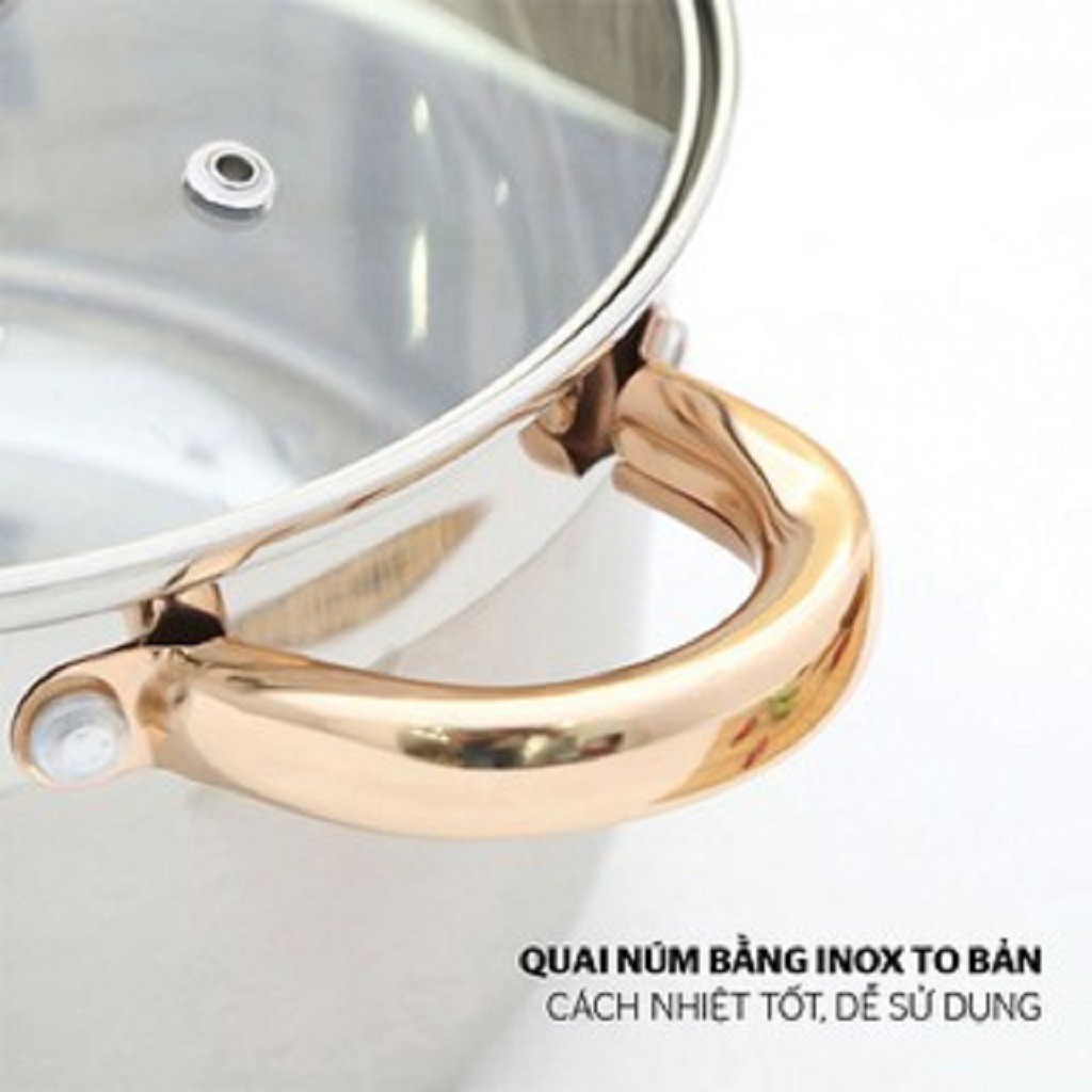 👉 Quai nồi: Inox mạ vàng sang trọng, tán đinh chắc chắn, chịu nhiệt, cách nhiệt tốt