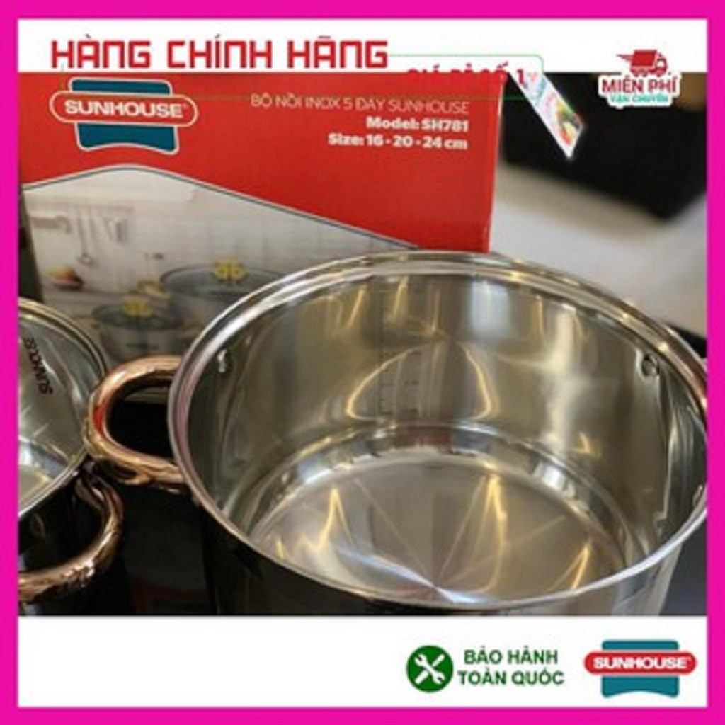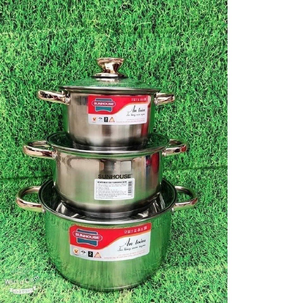 Bộ Nồi Sunhouse Bộ Nồi Inox Sunhouse 5 Đáy Dùng Cho Bếp Từ, Bếp Gas,Bếp Hồng Ngoại 3 Nồi Kích Thước: 16cm, 20cm, 24cm.👉 Cam kết chất lượng và hàng đúng với hình ảnh mô tả.