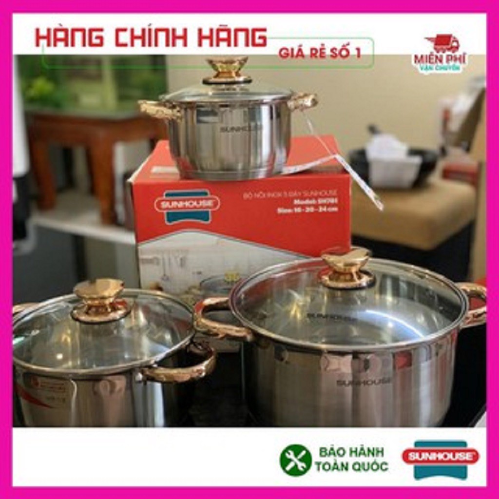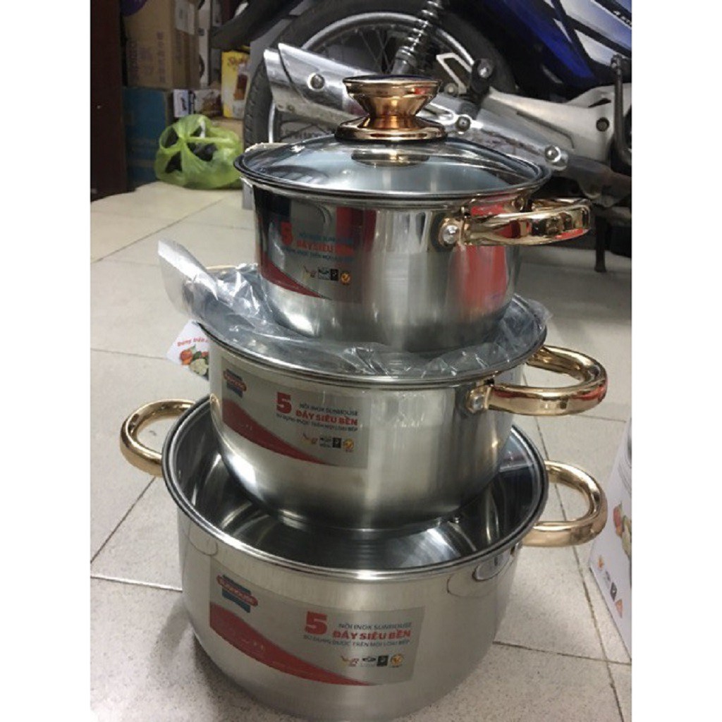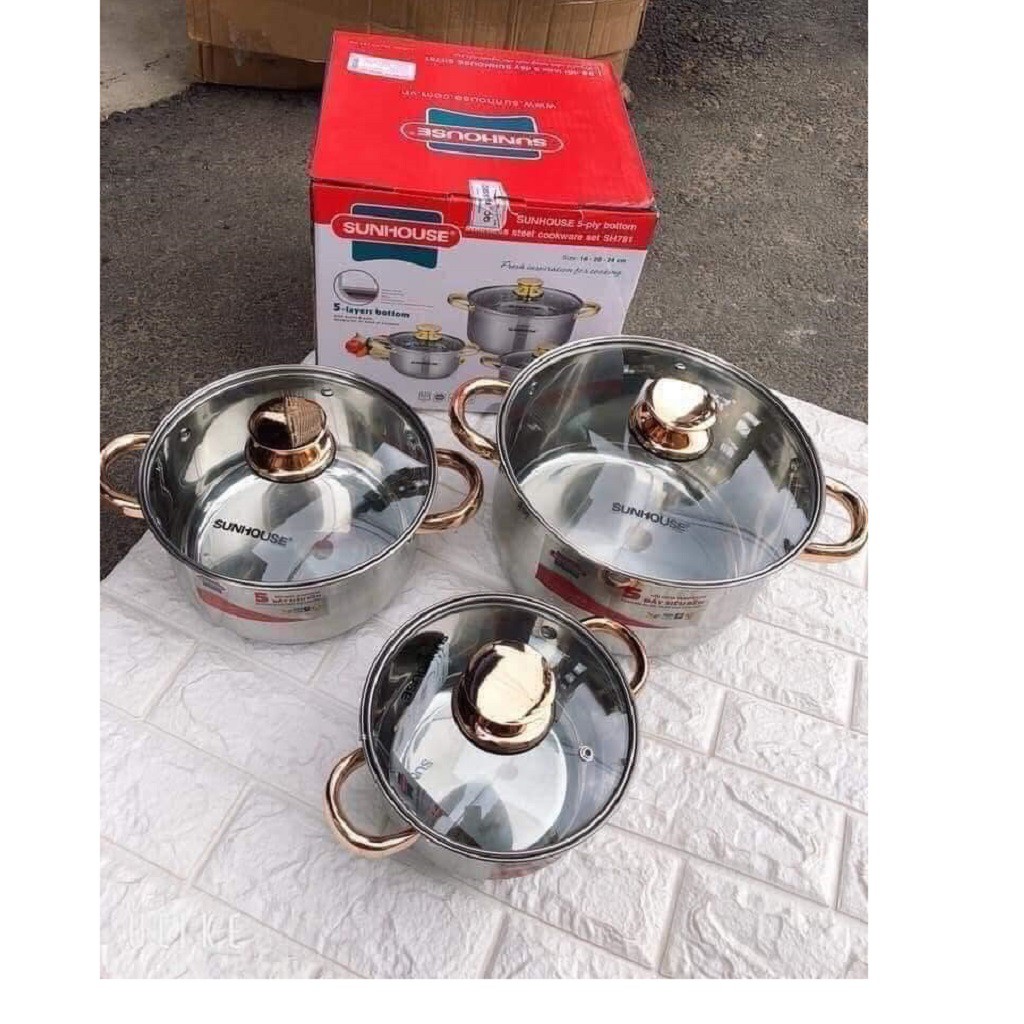 Nhà cửa & Đời sống > Dụng cụ nhà bếp > Nồi || Bộ Nồi Sunhouse Bộ Nồi Inox Sunhouse 5 Đáy Dùng Cho Bếp Từ, Bếp Gas,Bếp Hồng Ngoại 3 Nồi Kích Thước: 16cm, 20cm, 24cm.Còn hàng