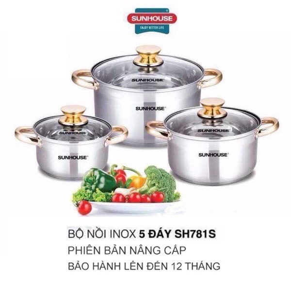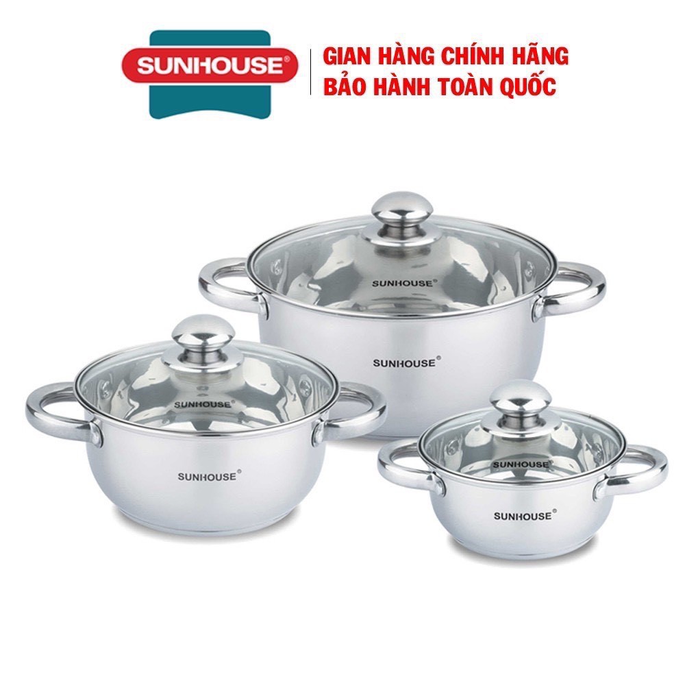 Nhà cửa & Đời sống > Dụng cụ nhà bếp > Nồi || Bộ Nồi sunhouse inox 3 cái, dáy dầy 5 lớp SH781 - 3 lớp SH334 cao cấp dùng cho cả bếp từCòn hàng