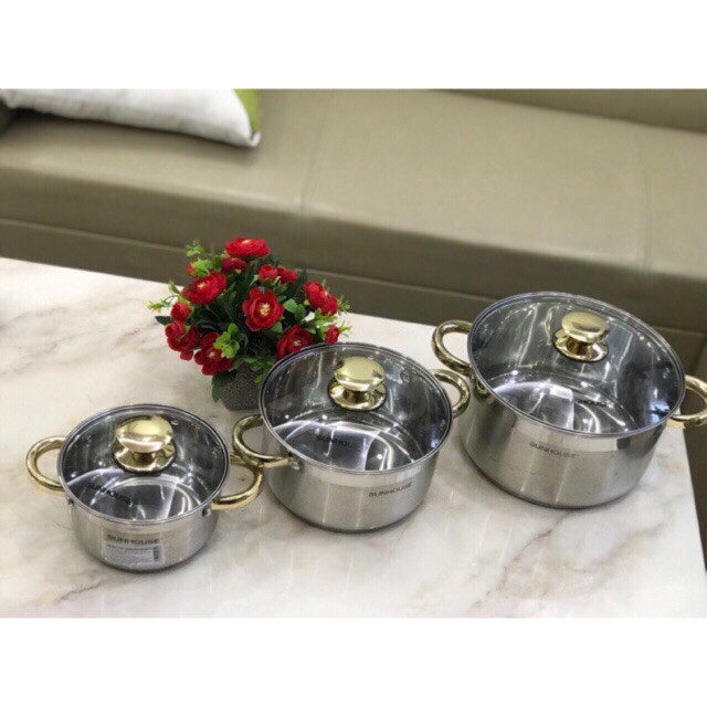 Nhà cửa & Đời sống > Dụng cụ nhà bếp > Nồi || Bộ Nồi SUNHOUSE Inox cao cấp đáy dày 5 Lớp SH781(16-20-24cm)có bán lẻ size, nấu được trên bếp từCòn hàng