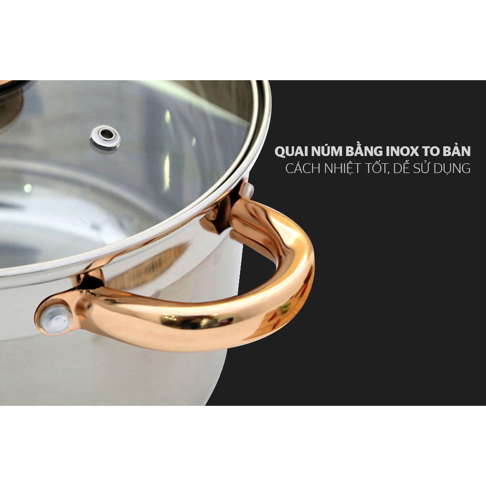 Bộ nồi Sunhouse, Nồi Inox đáy dày 05 lớp mã SH781, Dùng trên bếp Từ và mọi loại bếp, Quai và núm làm bằng inox mạ vàng
