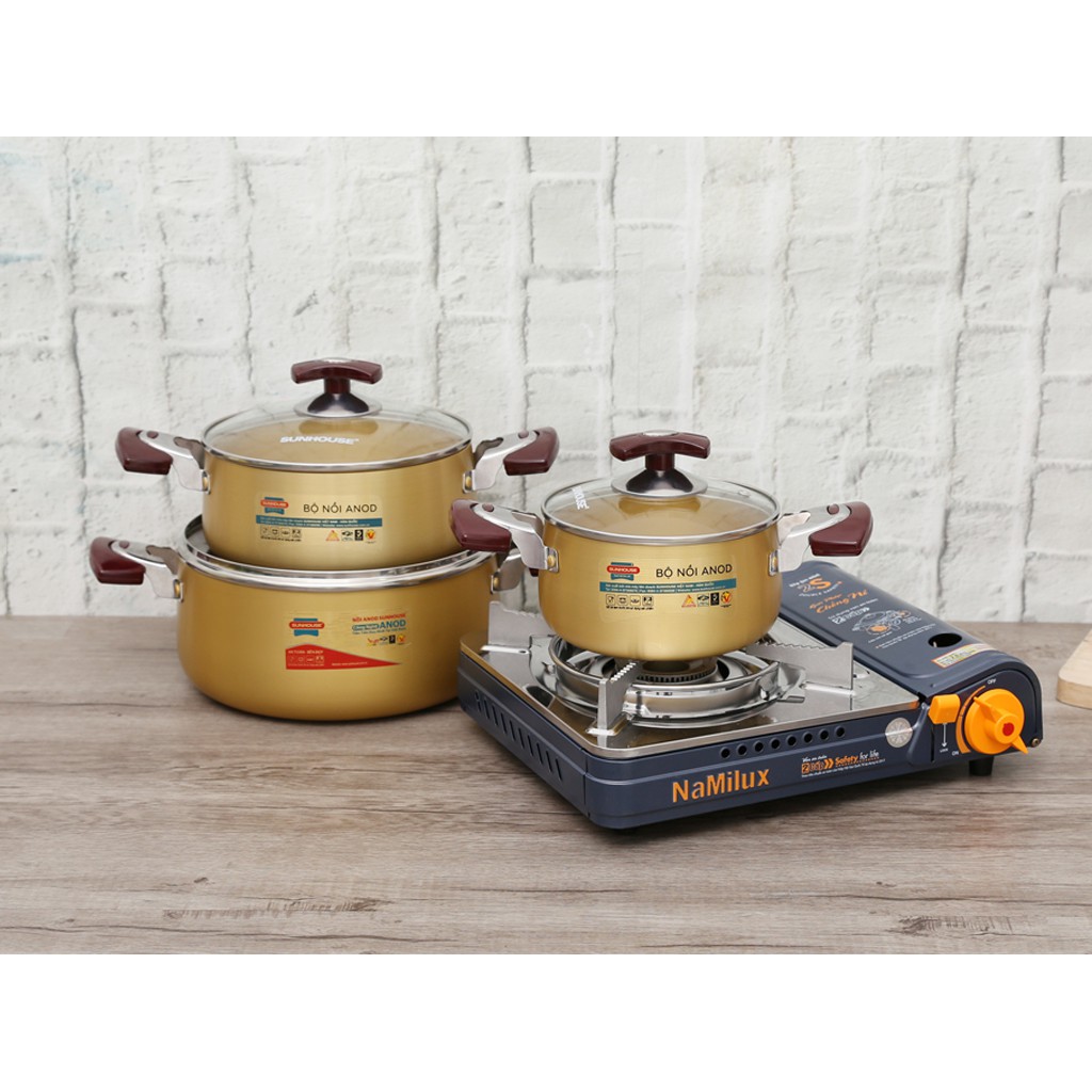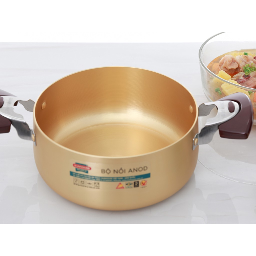 Bộ nồi ANOD SUNHOUSE SH 6634 màu vàng đẹp mắt không dùng được bếp từLưu ý, nhưng khách mua size lẻ thì hàng được đóng trong thùng carton nhé