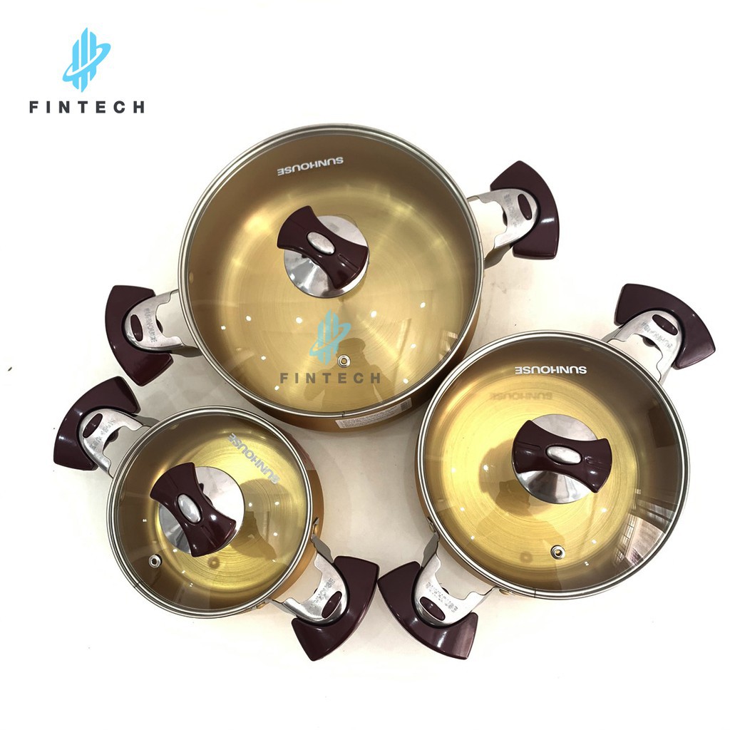 Bộ Nồi Sunhouse SH 6634 gồm 3 chiếc size 16-20-24cm màu (vàng đồng)