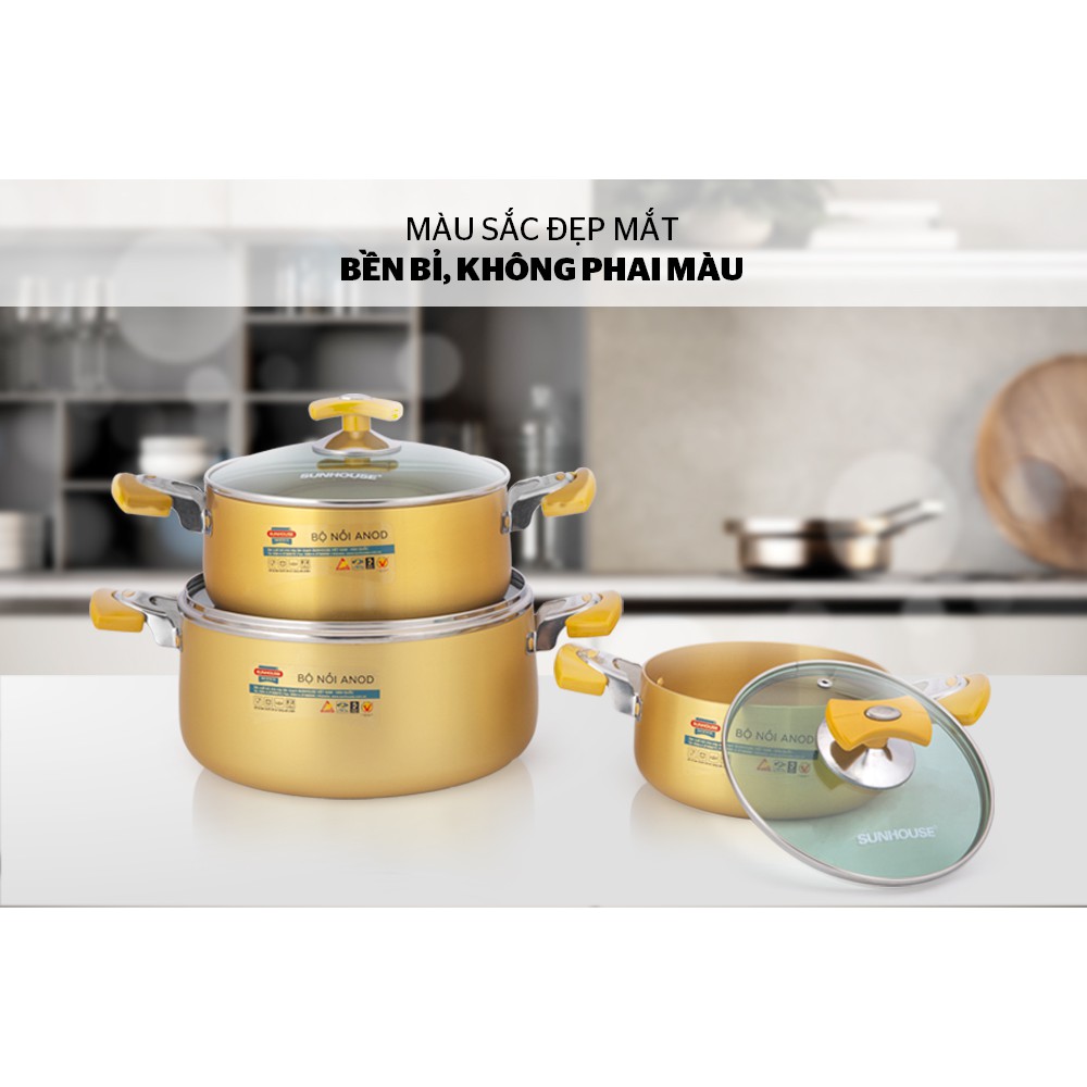 Nhà cửa & Đời sống > Dụng cụ nhà bếp > Nồi || Bộ nồi SUNHOUSE-SH883-3 chiếc-nhôm ANOD-công nghệ Hàn Quốc,nồi đẹp,sang trọng,chính hãng,giá rẻCòn hàng