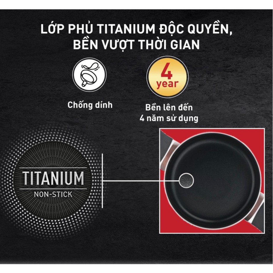 - LỚP PHỦ TITANIUM Bền chắc với hơn 16,000 lần chà nhám- Lớp phủ Titanium nonstick mang lại khả năng chống dính tuyệt vời