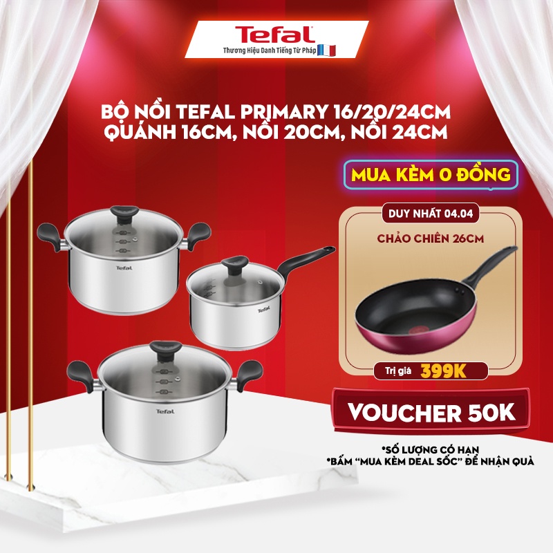 Giới thiệu [Mã LIFEHL25 giảm 10% đơn 350K] Bộ nồi Tefal Primary 16/20/24cm (quánh 16cm - 1.5L, nồi 20cm - 3L, nồi 24cm - 5.3L)
