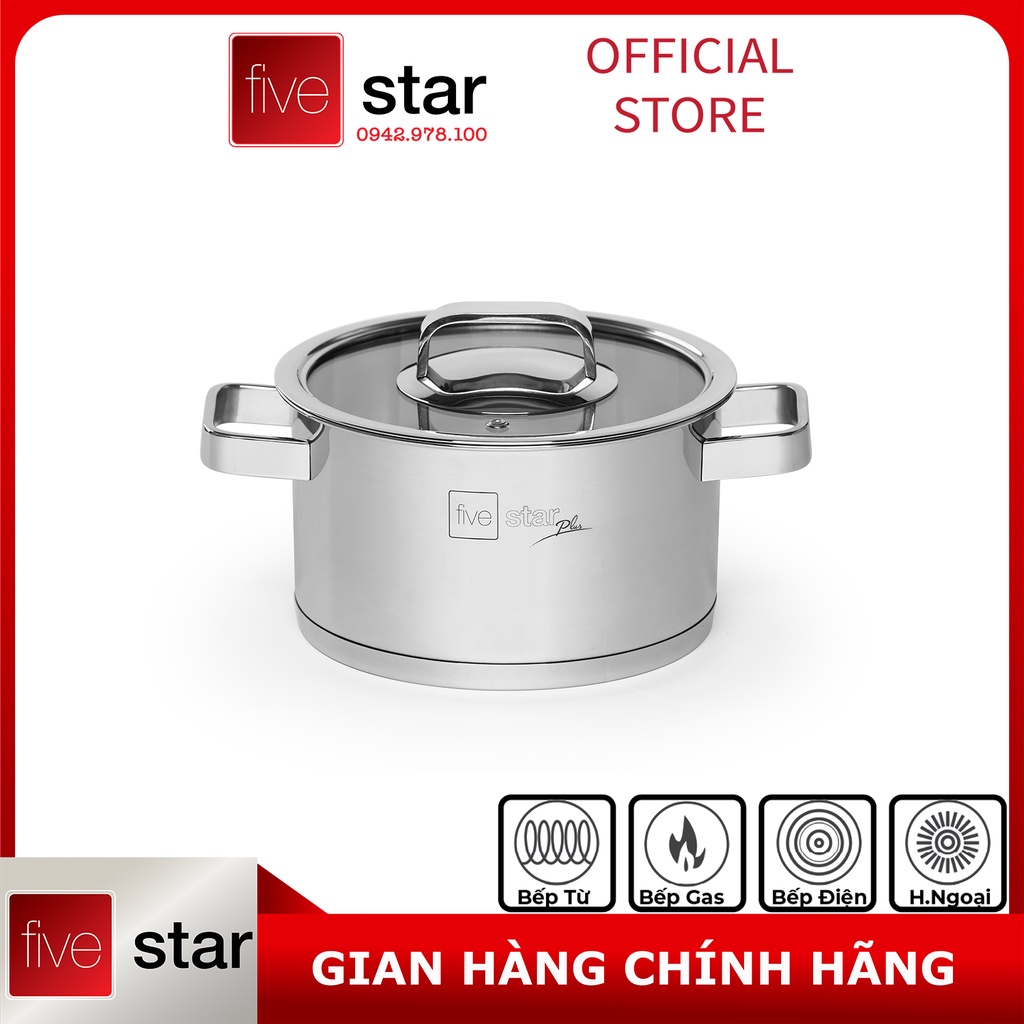 Nhà cửa & Đời sống > Dụng cụ nhà bếp > Nồi || Nồi thân cao 3 đáy inox 304 Fivestar Plus bếp từ quai vuông nắp kính ( 16cm / 18cm / 20cm / 24cm )Còn hàng