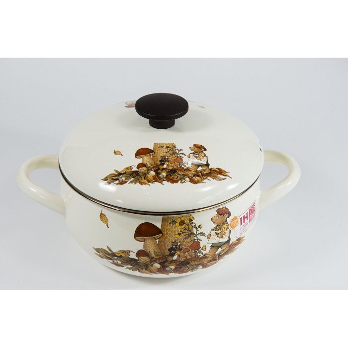 Nồi Thép Tráng Men 16cm (1.5L) Nhật FUJIHORO FTCV-16W.HL Gấu Nâu - Xài Bếp TừNồi Thép Tráng Men 20cm (2.4L) Nhật FUJIHORO FTCV-20W.HL Gấu Nâu - Xài Bếp Từ