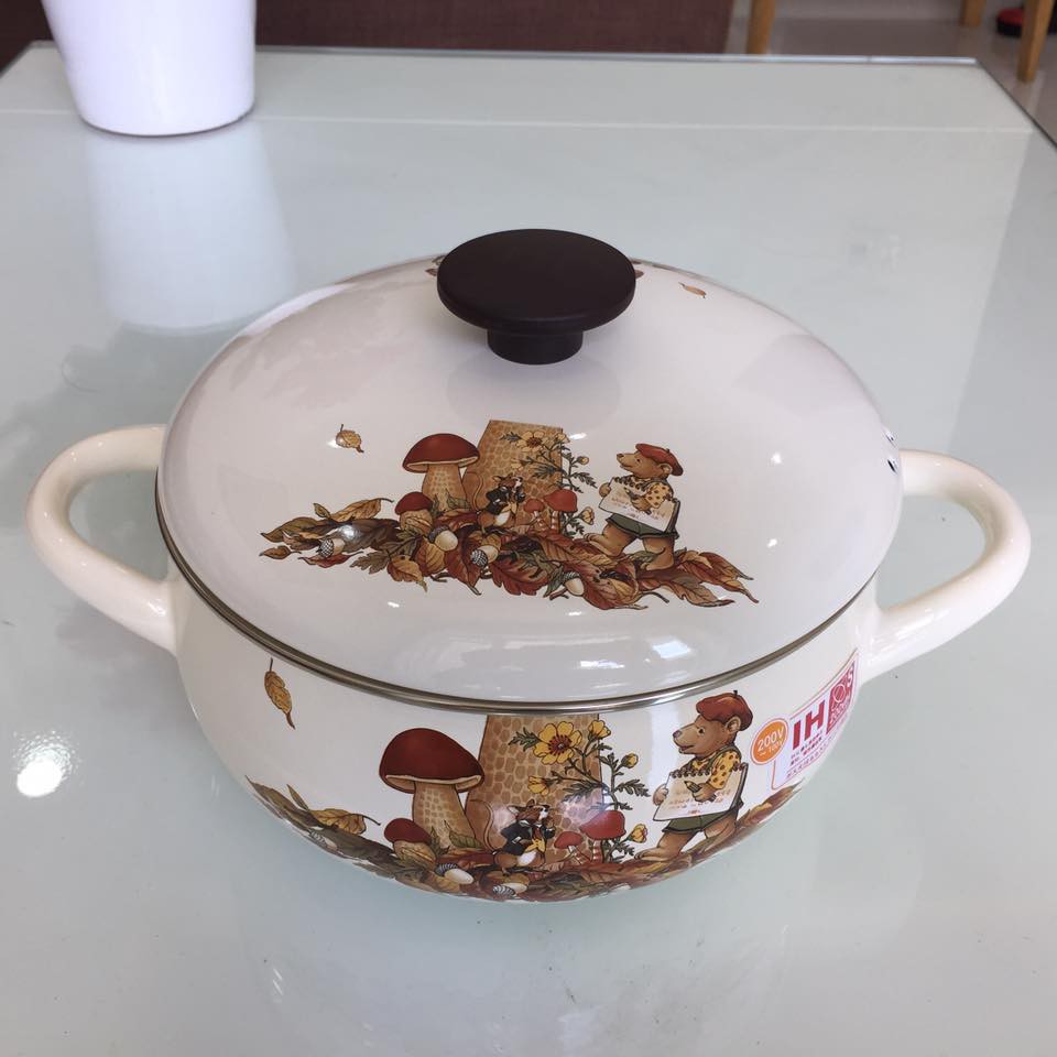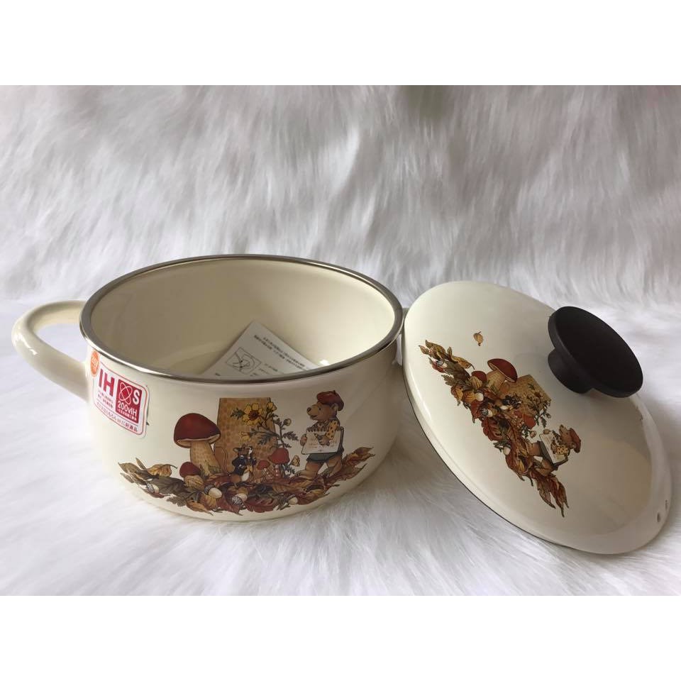 Nhà cửa & Đời sống > Dụng cụ nhà bếp > Nồi || Nồi Thép Tráng Men 16cm/20cm Nhật FUJIHORO FTCV Gấu Nâu - Xài Bếp TừCòn hàng