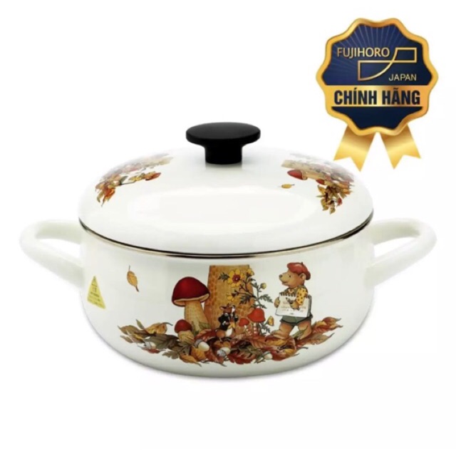 Giới thiệu Nồi Thép Tráng Men 16cm/20cm Nhật FUJIHORO FTCV Gấu Nâu - Xài Bếp Từ