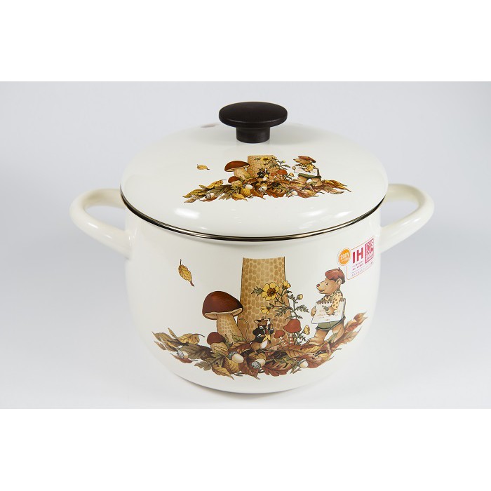 Nồi Thép Tráng Men 20cm (4.3L) Nhật FUJIHORO FTCV-20DW.HL Gấu Nâu - Xài Bếp Từ*** Nồi Dùng Trên Mọi Loại Bếp, Đặc Biệt Dùng Tốt Trên Bếp Từ