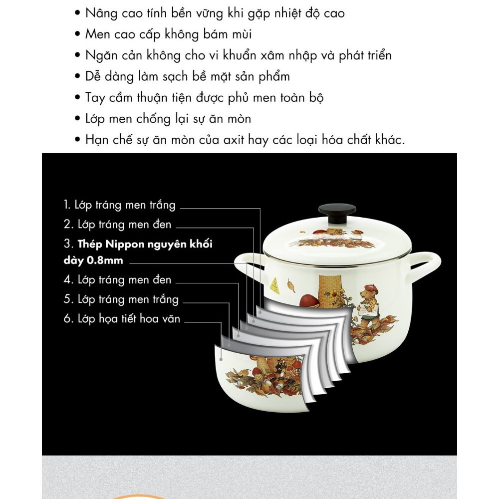 Nồi Thép tráng men Nhật Bản cao cấp Fujihoro con gấu (Xài tốt trên bếp từ), nhập khẩu Thái Lan , bảo hành 2 năm