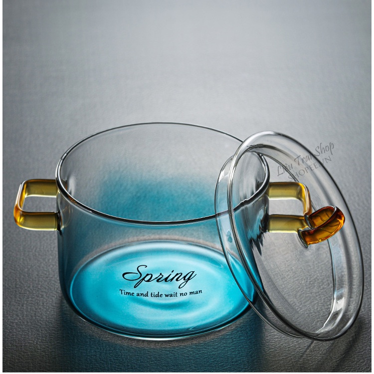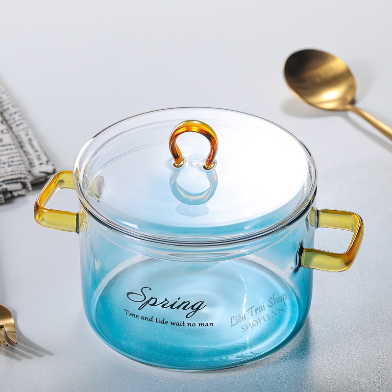 Nồi thủy tinh nồi nấu mì tôm đựng salad xanh gradient phong cách Bắc ÂuNồi thủy tinh thiết kết dễ thương thân thiện lịch lãm