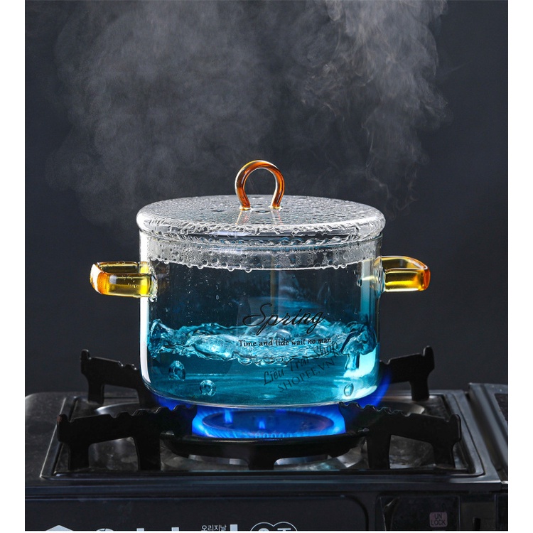 Giới thiệu Nồi thủy tinh nồi nấu mì tôm đựng salad xanh gradient phong cách Bắc Âu