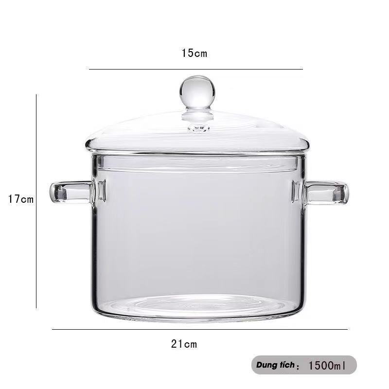 Nồi Thủy Tinh Trong Suốt chịu nhiệt nấu được trên bếp gas,hồng ngoại, bếp điện nhiệt dung tích 1500ml