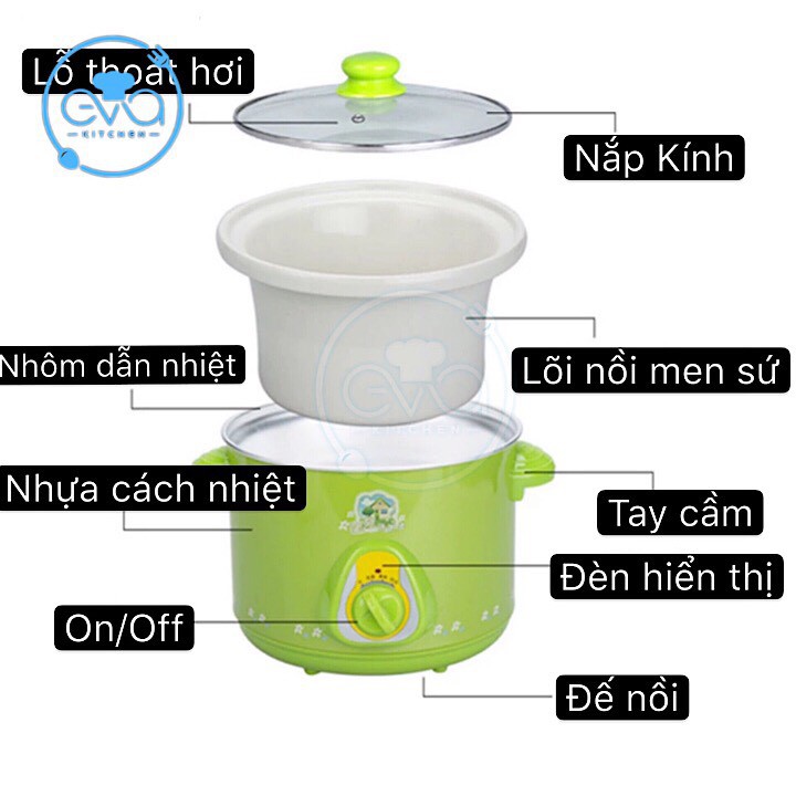 - Bộ sản phẩm gồm: 1 Nồi Tiềm Nấu Cháo Chậm Kho Cá Hầm Chưng Yến Đa Năng