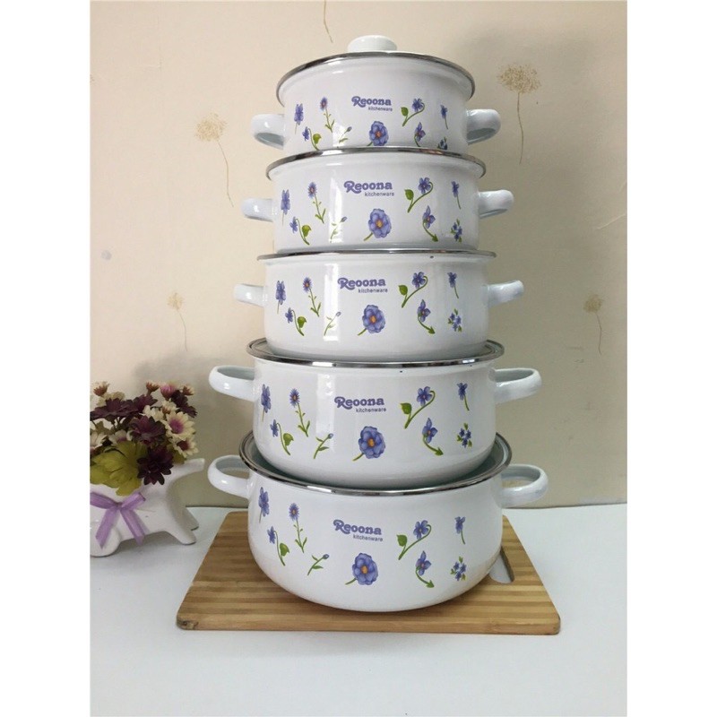 bộ nồi tráng men ceramic 5 cái cao cấp Reoona ( hàng chính hãng)
