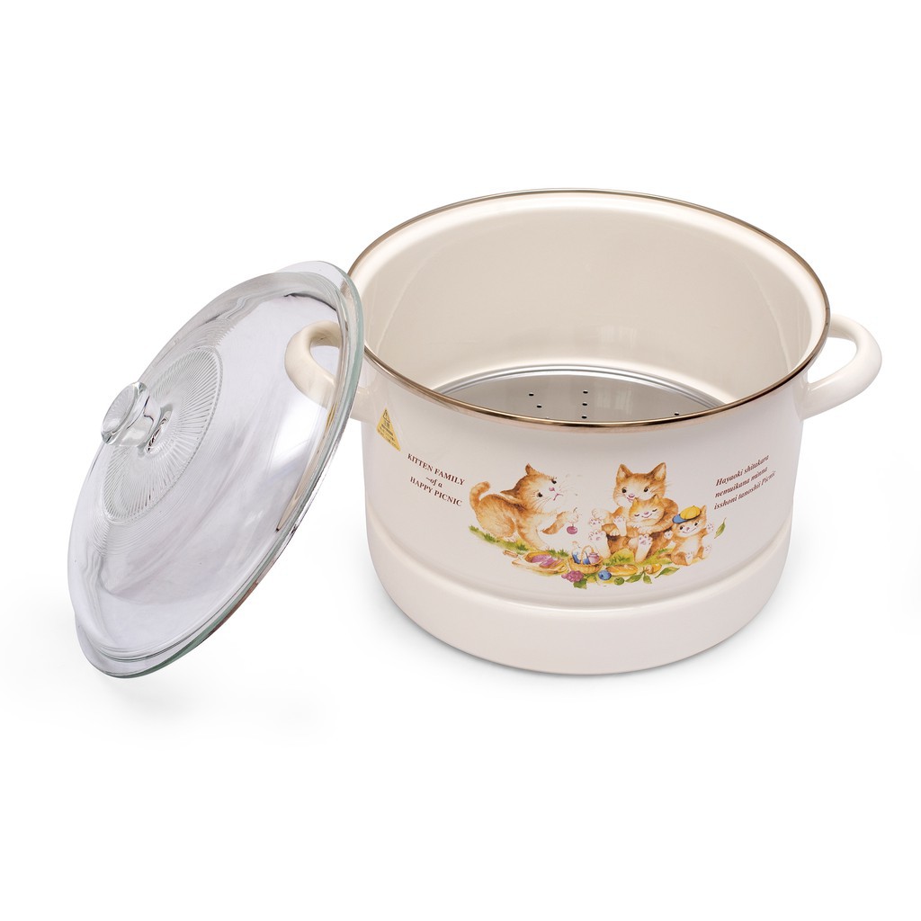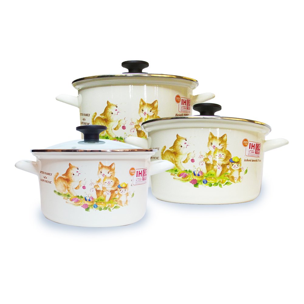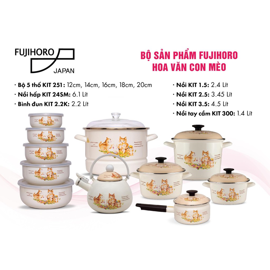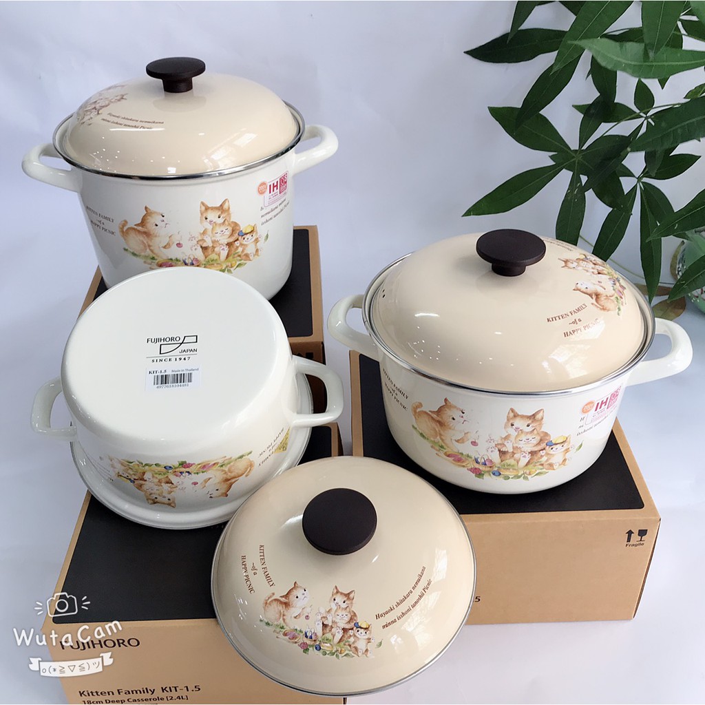 Bộ nồi tráng men chống dính Nhật Bản cao cấp FUJIHORO , Nhập khẩu Thái Lan( nồi , quánh, ấm, thố, bộ nồi xửng-con mèo)