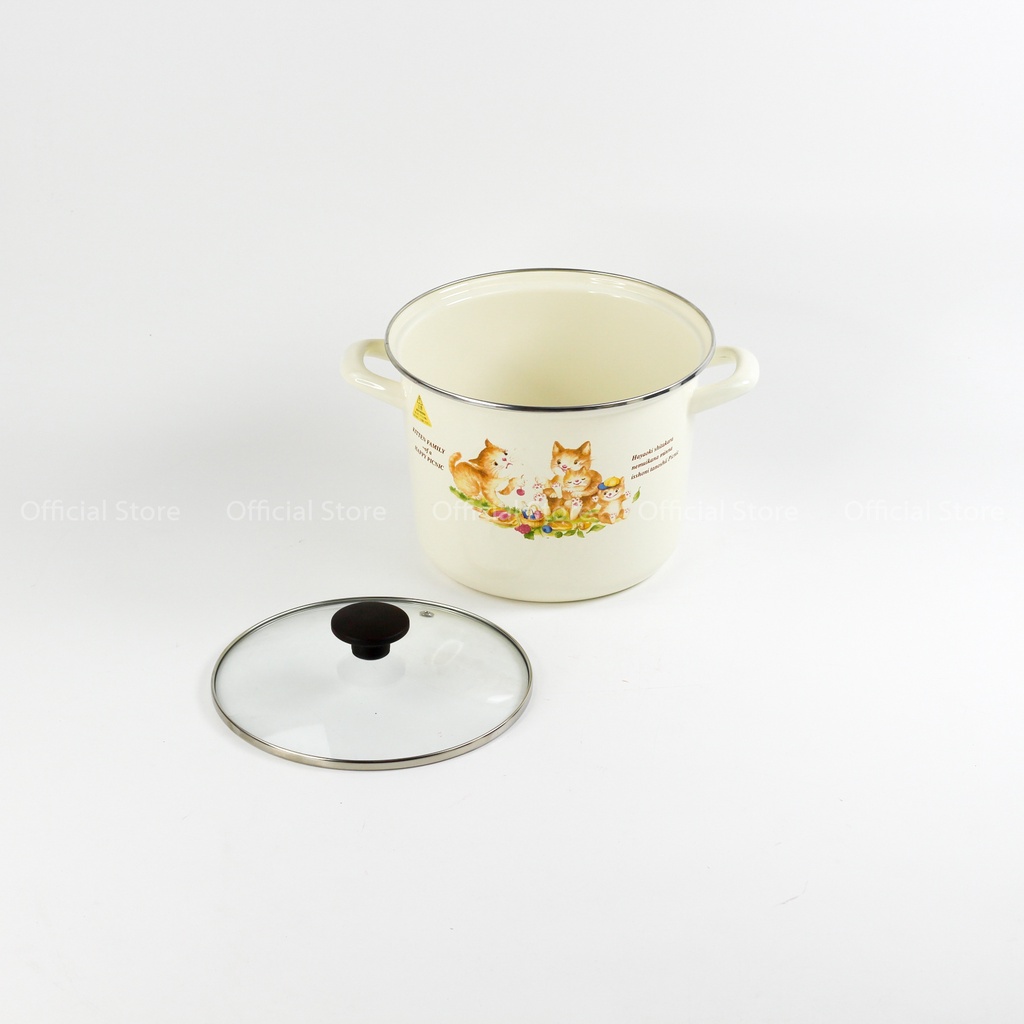 Nồi tráng men Fujihoro KIT-3.5G (nắp thủy tinh) 3.5L (hoa văn con mèo) - Hàng chính hãng - Bảo hành 24 tháng