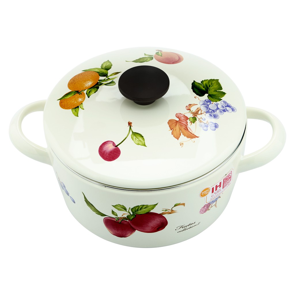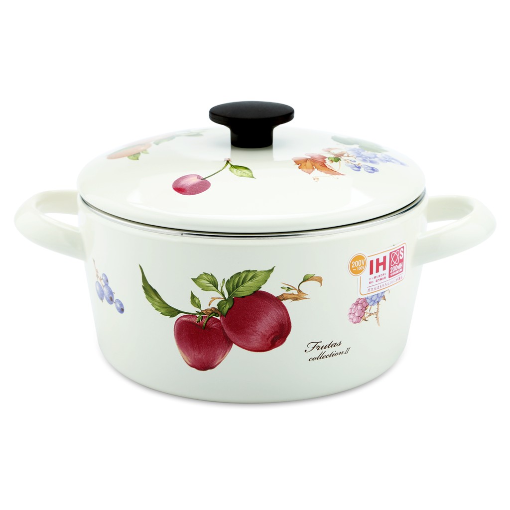 Nồi tráng men Nhật Bản cao cấp Fujihoro bếp từ nhập khẩu Thái Lan Hoa văn trái cây ( 16cm / 18cm / 20cm / 22 cm )