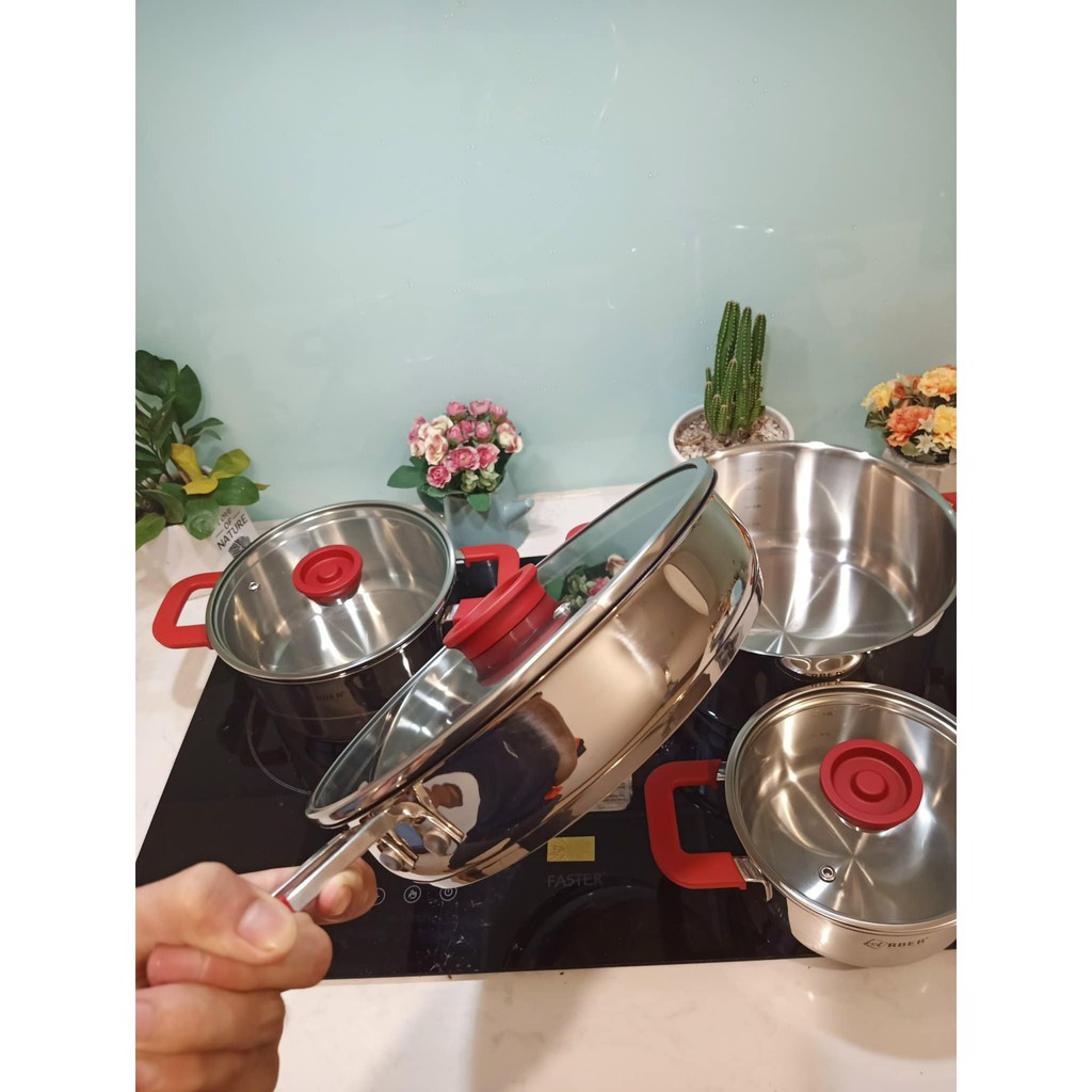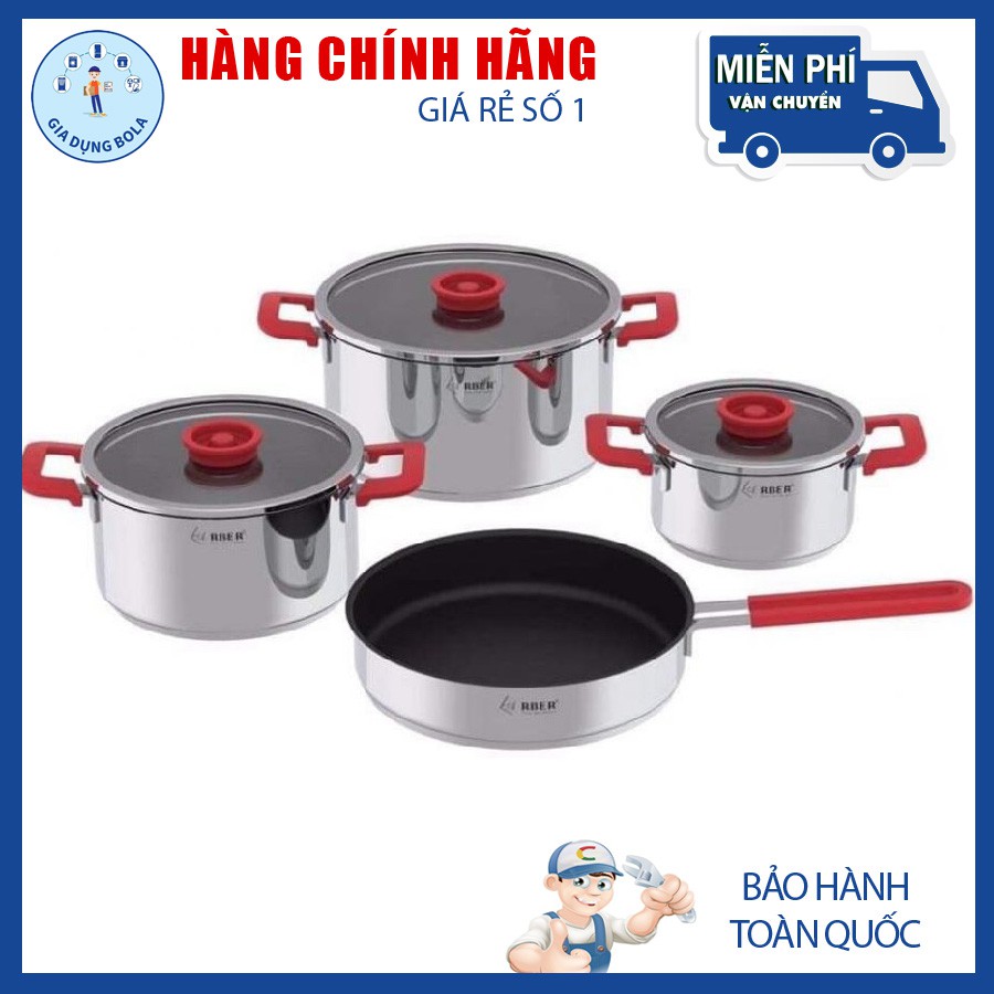 *** Bộ Nồi Từ Chảo 4 Món ARBER ROSY Cao Cấp Nắp Đỏ - Hàng Chính Hãng ***
