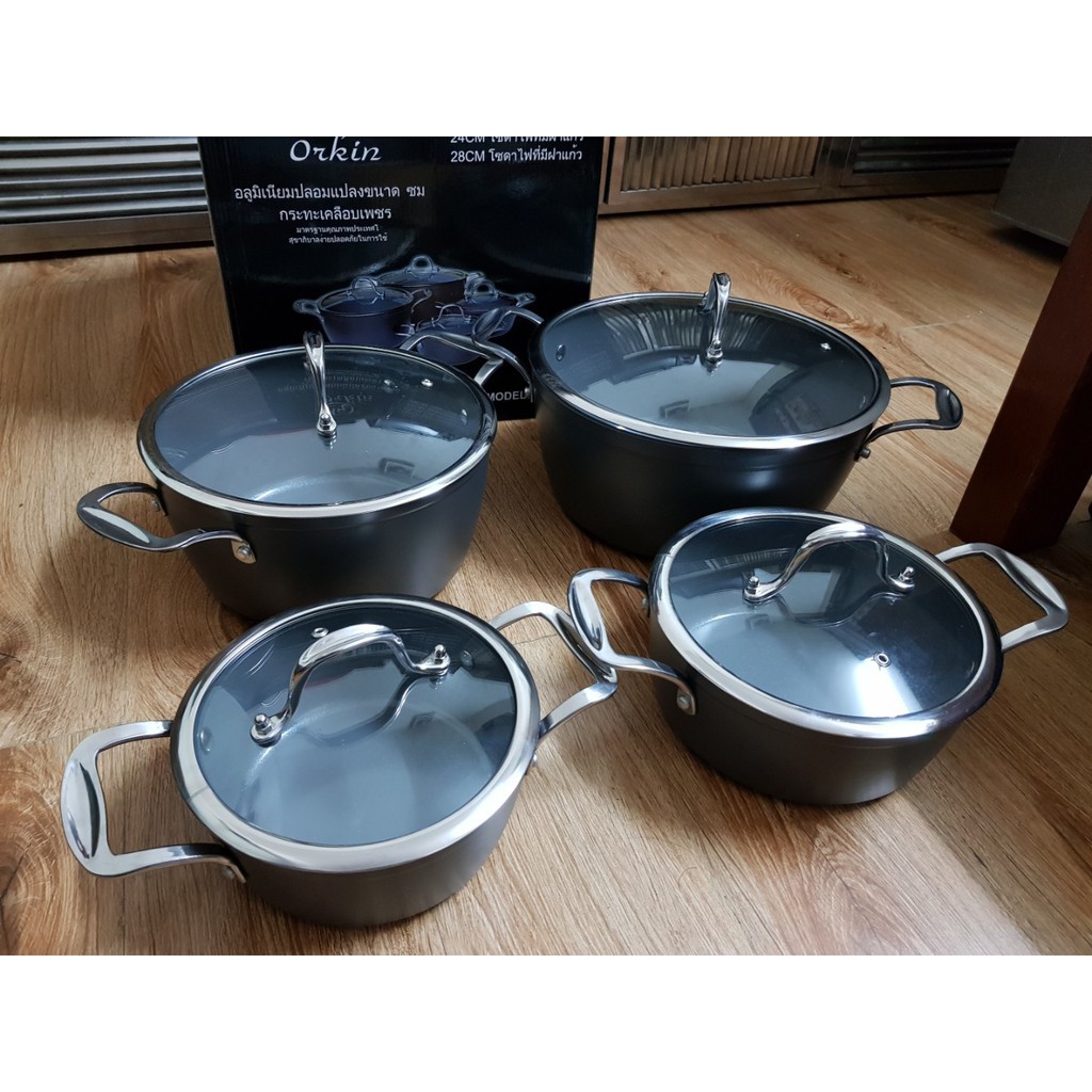 Giới thiệu Bộ nồi từ nhập khẩu Thái Lan Orkin 4 chiếc 18, 20, 24, 28cm, bảo hành 12 tháng, thân nhôm đúc, phủ chống dính nano