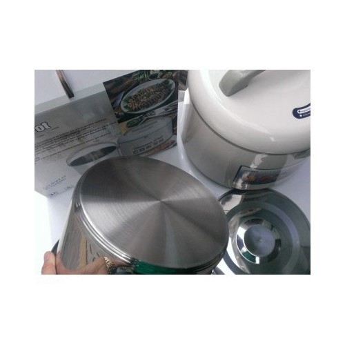 - Chất liệu lòng nồi bằng inox 304 tuổi thọ cao và không gỉ sét, đặc biệt là đáy nồi dày 3 lớp giúp giữ nhiệt tốt hơn, thức ăn được ủ nóng và mêm hơn.