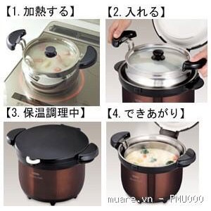 - Nồi ủ Thermos nấu chín thức ăn bằng nguyên lý giữ nhiệt chân không.
