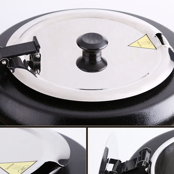 Với thiết kế nắp đảo ngược rất tiện lợi khi bạn bật nắp lên nhanh chóng, tiết kiệm thời gian cũng như không gian khi thao tác lên bình ủ trân châu này. Bên cạnh đó, nồi ủ trân châu này có chiếc muỗng được lắp đặt rất đặc biệt, có thể đặt nó trong bình ủ và không sợ bị rơi xuống nồi. Vật liệu đáy là cao su để tạo độ ổn định, chống va đập mạnh khi đặt xuống bàn (đất). Với chân của bình ủ trân châu có chất chống trượt sẽ không cho nồi ủ trân châu di chuyển, cố định an toàn.