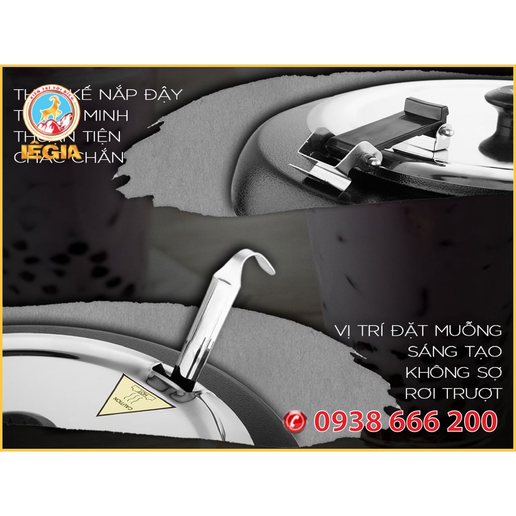 - Nắp nồi được làm bằng inox, có điểm thoát nhiệt tránh trào hay tràn nước.
