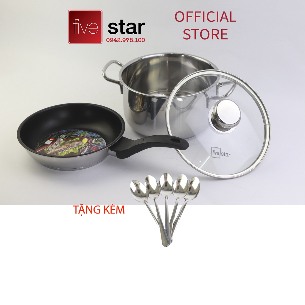 Nhà cửa & Đời sống > Dụng cụ nhà bếp > Nồi || Nồi và chảo chống dính 3 đáy inox 430 FiveStar Standard bếp từ nắp kính tặng 5 muỗng (16cm/20cm/24cm )Còn hàng
