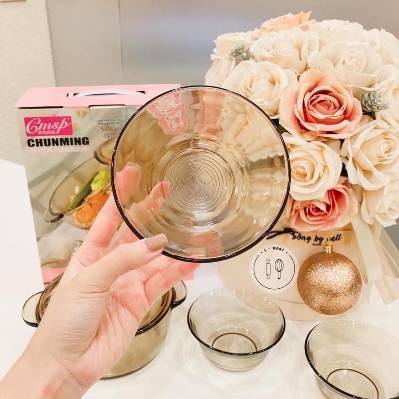 Nhà cửa & Đời sống > Bộ đồ bàn ăn > Tô || Bộ nồi và chén bát thuỷ tinh trong suốt 5 món cao cấp phong cách Hàn Quốc cực sang - Bộ tô chén thuỷ tinh decor bàn ănCòn hàng