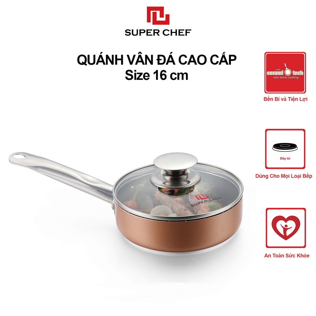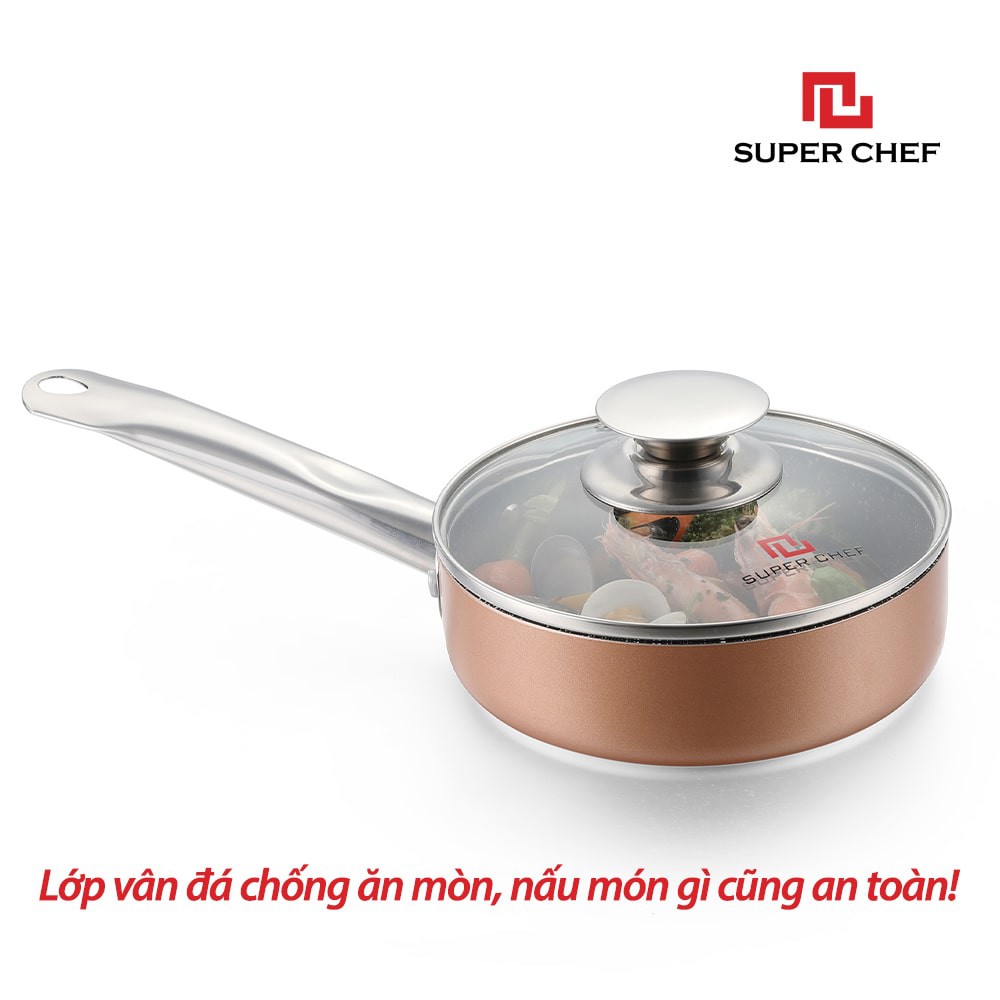 [Mã BMBAU50 giảm 7% đơn 99K] Nồi Vân Đá Chống Dính Đáy Từ Super Chef 16cm Siêu Bền Kèm Nắp Kính