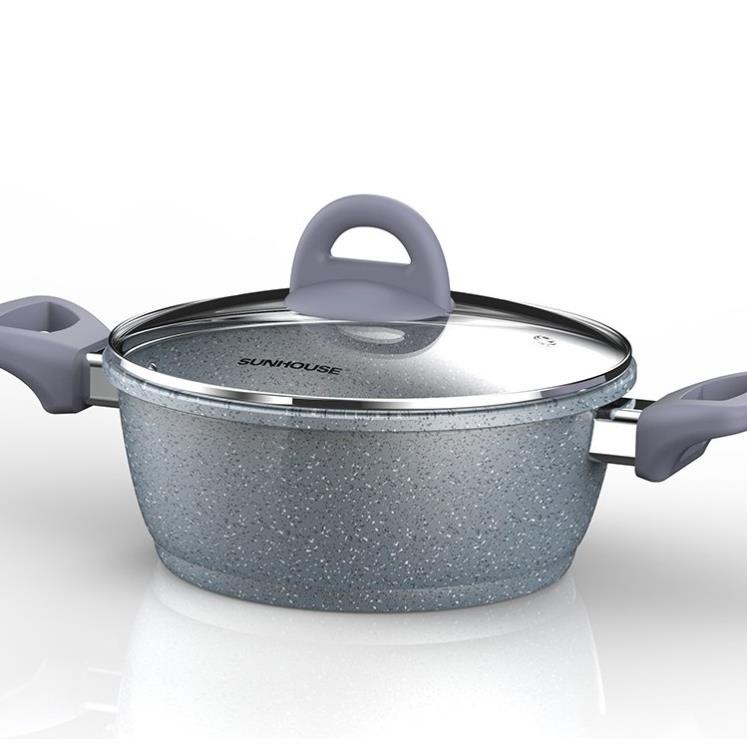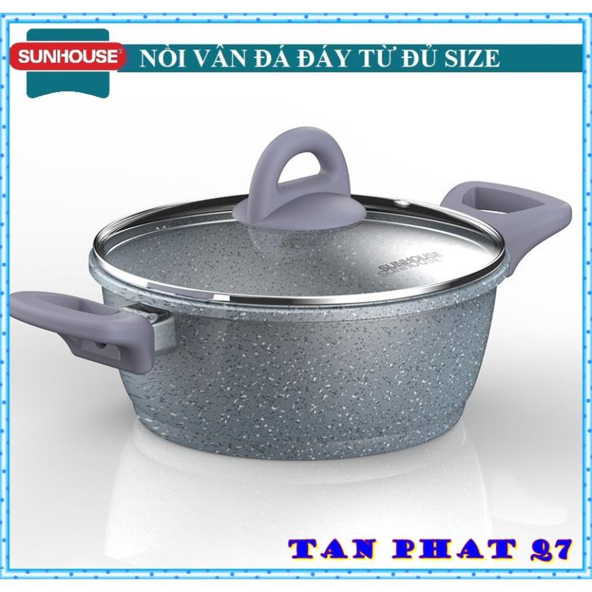 Giới thiệu NỒI VÂN ĐÁ ĐÁY TỪ QUAI SILICON SUNHOUSE 16 20 24 CM đủ size