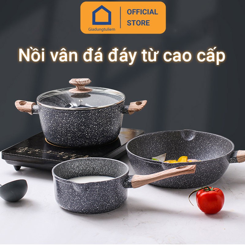 Nồi Vân Đá Đáy Từ ❤️RẺ VÔ ĐỊCH❤️ Chống Dính Chất Liệu Nhôm cao cấp đủ kích thước phù hợp với mọi gia đình